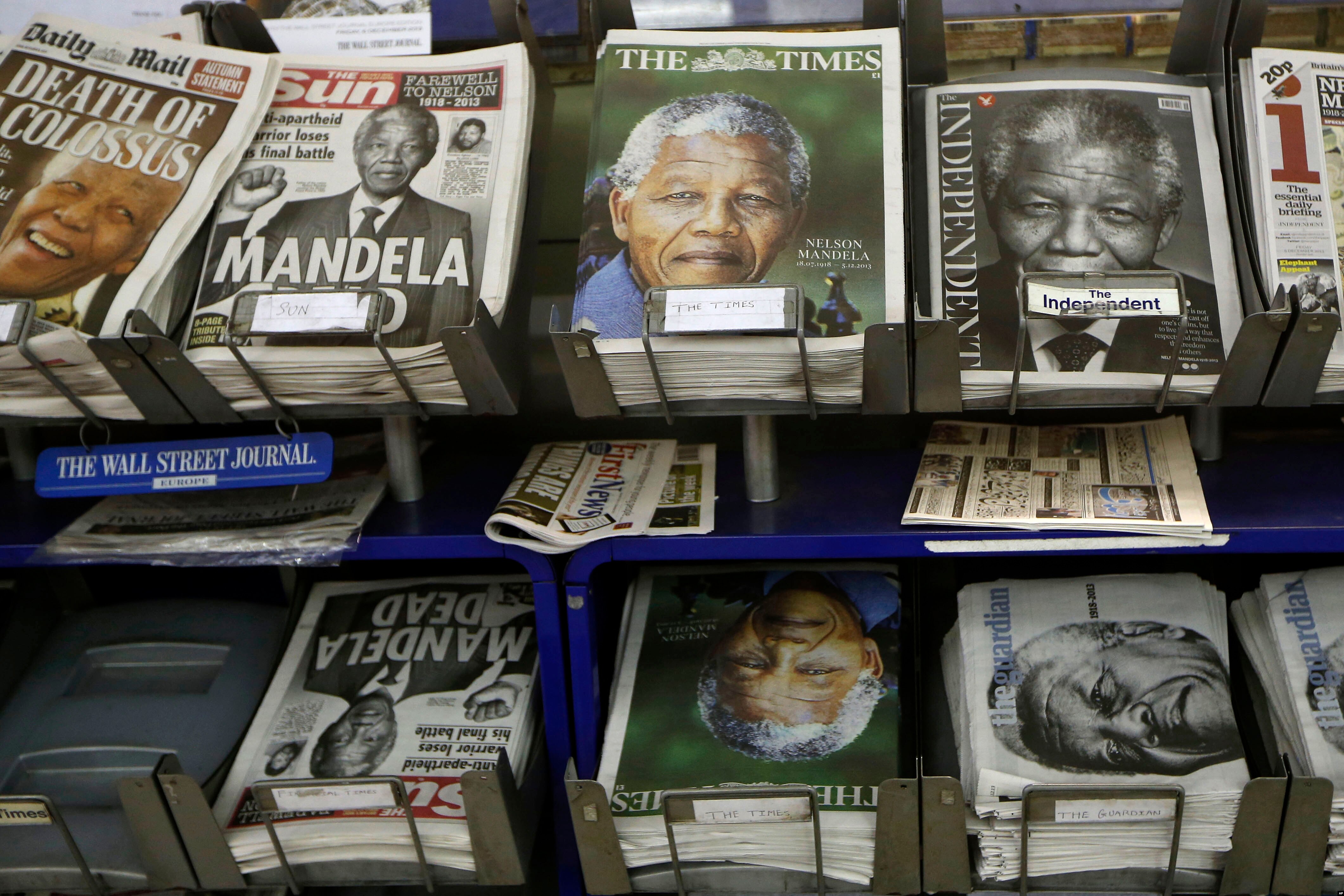 Newspapers with pictures of Nelson Mandela on the front page on sale in London, Dec. 6, 2013.