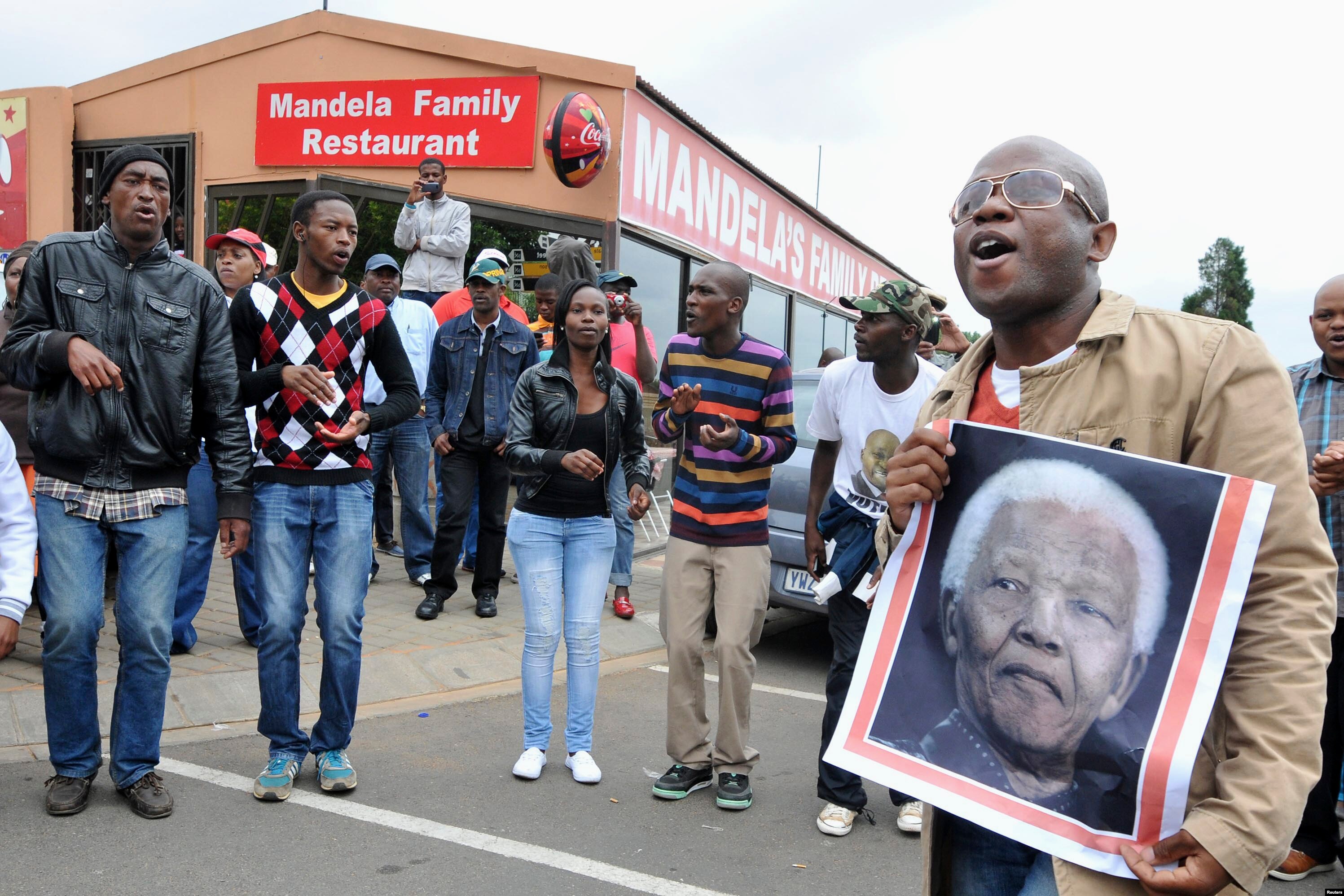 People sing and dance during a gathering of mourners on Vilakazi Street in Soweto, Dec. 6, 2013.